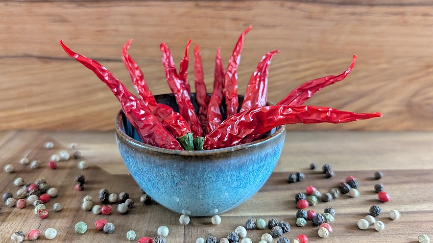 Die fertigen Chilischoten dunkel, luftdicht und trocken lagern. Dadurch können sie sich mehrere Jahre halten.